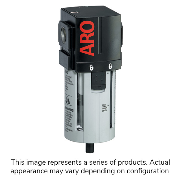 ARO-Flo 2000 Series 3/4 inch Filter, 216 scfm flow capacity, polycarbonate bowl, automatic drain, 5 micron filter element.