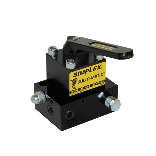 Pump mounted, 3 position, 3 way valve is commonly used with single-acting cylinders for lifting applications or production work. The center position holds the load with the pump motor on or off.