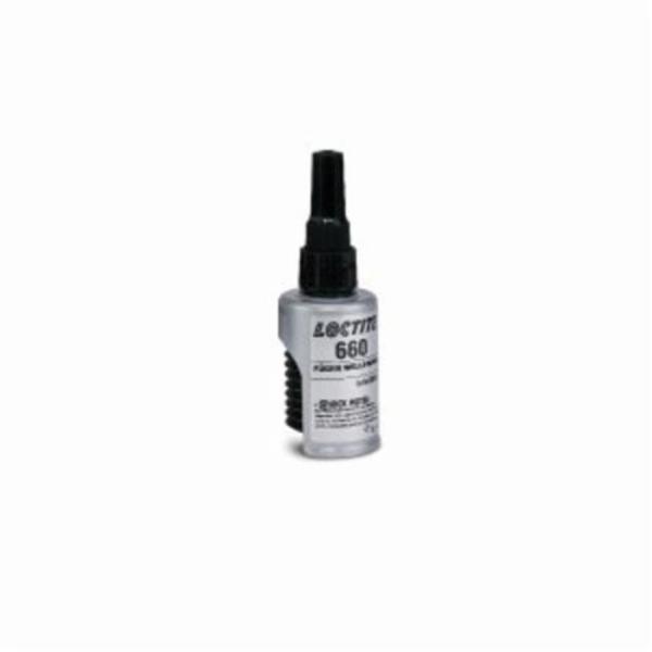 Loctite® Retaining Compound, 1-Part, Series: 660™, Tube, 50 mL, Composition: Dimethacrylate Ester, Hydroxyalkyl Meth Acrylate Cumene Hydroperoxide, Silica, Amorphous, Fumed, Crystal-Free, Mica, 2,5-Furandione, Telomer with Ethenylbenzene, (1-Methylethyl)Benzene, Adhesion Promoter, Cumene, 1-Acetyl-2-Phenylhydrazine, Titanium Dioxide, Paste, 20 min Setting Time, 24 hr Curing, Silver, Mild, -65 to 300 deg F, 1.1 Specific Gravity, >199.4 deg F Flash, 12.57 g/L VOC, 250000 to 1500000 cPs Viscosity Rating, 2490 psi Shear Strength