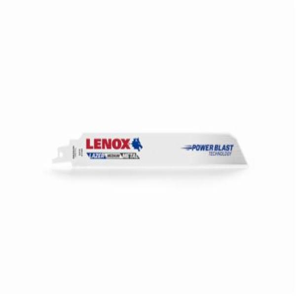 Lenox® Lazer® Reciprocating Saw Blade, Shatter Resistant Straight, 9 in Length, 1 in Width, 0.035 in Thickness, 18, Patented/Reinforced Teeth, 1/2 in Tang, Universal Tang, HSS-Co 8 Cutting Edge, Steel Body, Bright, Applicable Materials: Black Pipe and Copper Pipe