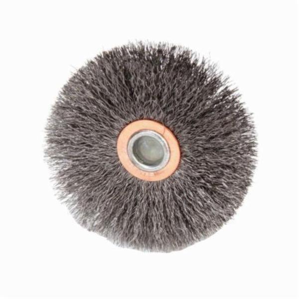 Conflex Stem Mount Wide Face Crimped Wire Wheel Brush, 2" Dia x 3/4" W, 1/4" Arbor, 0.0118" Carbon Steel Wire