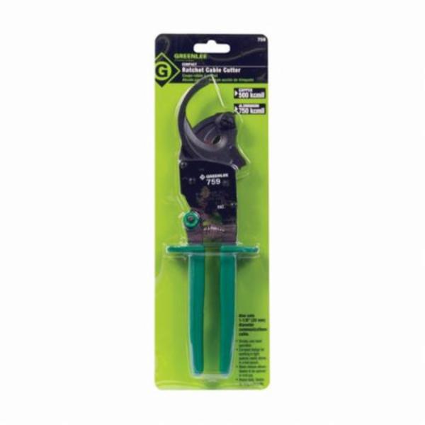 Greenlee® 760 Compact Ratchet Cable Cutter, 1000 kcmil Aluminum, 750 to 1000 kcmil Copper, 1-3/4 in Dia Communication, 11-3/4 in OAL