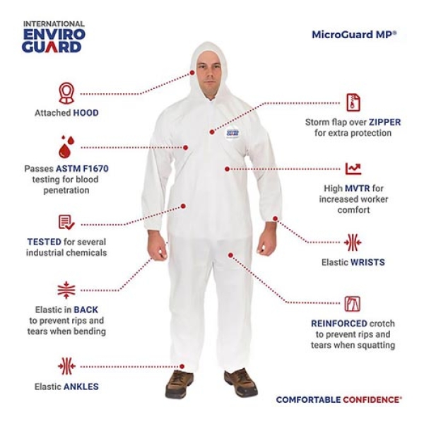 COVERALL MICROGUARD W/ HOOD ELASTIC WRIST BACK AND ANKLE 4XL (INT-8015-4XL-@)