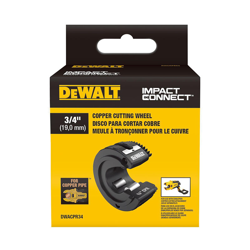 Replacement 3/4 in cutting wheel for DEWALT IMPACT CONNECT Copper Pipe Cutter. Transform your impact driver into a fast and powerful copper pipe cutter. Cut 4X faster while avoiding the hassle of hand tools. Compatible with the DWACPRIR Copper Cutter Attachment, or use as a hand tool in close quarters. For use with types K, L, and M copper.