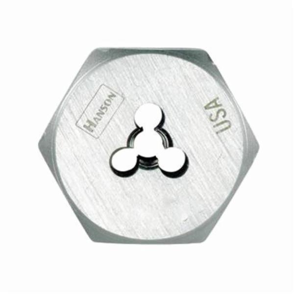 Irwin® Hanson® Threading Die, Flat Hexagon, Measurement System: Imperial, 5/8-11 Thread, UNC Thread, 3/8 in Thickness, 1.137 in Die Outside Dia, 1-7/16 Hex, Right Hand Thread, High Carbon Steel
