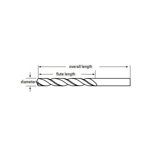 Chicago-Latrobe® Jobber Length Drill Bit, Heavy Duty, Series: 550, Metric/Imperial, 12 mm Drill - Metric, 0.4724 in Drill - Decimal Inch, 151 mm Overall Length, 5XD Cutting Depth, 2 Flutes, Right Spiral Flute, 101 mm Flute Length, 12 mm Dia x 50 mm L Shank, Straight Shank, 135 deg Point, Split Point, Right Hand Cutting Direction, M42 HSS-Co 8% Cutting Edge, No Through Coolant, M42 HSS-Co 8%, Straw Oxide, Applicable Materials: Alloy Steel, Stainless Steel, Titanium and Tool Steel