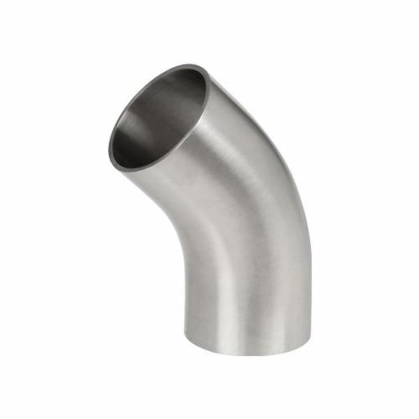 Smith-Cooper® S77L2KS4020 45 deg Sanitary Elbow, 2 in, Butt Weld, 304 Stainless Steel