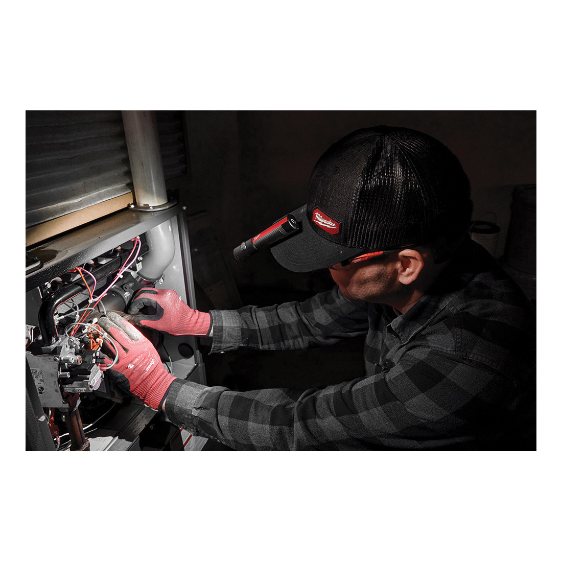 Milwaukee® Flashlight, Cordless Rechargeable, LED Bulb, 500 Lumens, Bulls-Eye Spot Beam, Lithium-Ion Battery, 1 Batteries, Black/Red, Aluminum Housing Material, IP67 Enclosure, 4.25 in L x 0.88 in W Dimensions