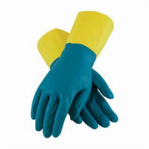 Double Dipped Chemical Resistant Gloves, XL, Neoprene/Natural Rubber Latex, Blue/Yellow, Flock Lined Lining, 12 in L, Resists: Abrasion, Acid, Chemical, Caustic, Cut, Oil and Puncture, Unsupported Support, Straight Cuff, 28 mil THK