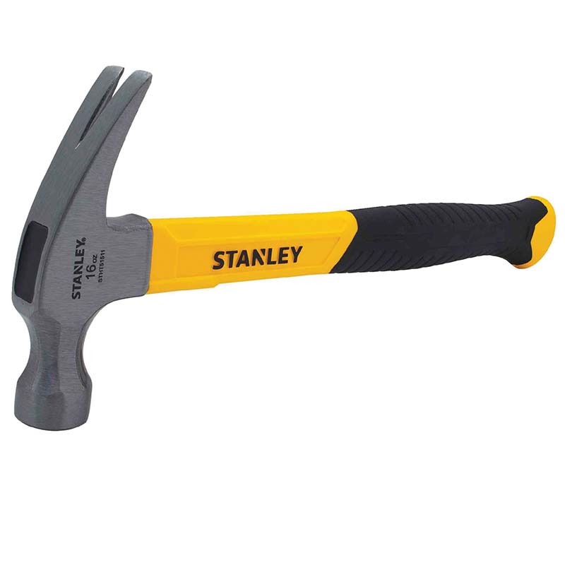 Stanley® Nailing Hammer, 12-3/4 in Overall Length, 1-1/8 in Diameter Face, Smooth Face Surface, 16 oz Head, Carbon Steel Head, 5-1/2 in Head Length, Straight Handle, Fiberglass Handle, Ergonomic Rubber Grip, Rip Claw Style