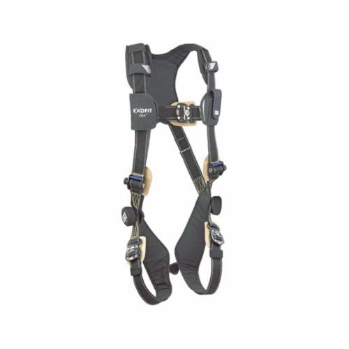 ExoFit™ NEX™ Arc Flash Harness, L, 420 lb Load, Kevlar®/Nomex® Strap, Quick-Connect Leg Strap Buckle, Quick-Connect Chest Strap Buckle, Aluminum/Steel Hardware, Black