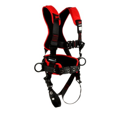 3M™ Protecta® comfort construction style positioning/climbing harness with a fixed D-ring to minimize workday readjustment and breathable back/hip padding. Plus, a durable and sturdy belt, tongue buckle leg connection, quick-connect chest connection and back, front and side D-rings. Designed for comfort, these harnesses are rated for 420 lb (190 kg) total working weight.