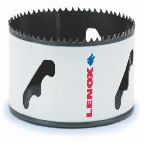 Lenox® SPEED SLOT® Hole Saw, 4-1/8 in Dia, 1-7/8 in Cutting Depth, 18, 5/8 in Arbor, 3-1/4 in Overall Length, 1/4 in Drill, Bi-Metal Cutting Edge, Toothed Cutting Edge, 1/4 in Chuck, Hex Shank, 1/2 in Shank, Use Arbor: 2L, 6L Snap-Back™, 2L, 3L, 6L or 7L Standard, Applicable Materials: Stainless and Mild Steel, Cast Iron, Copper, Brass, Aluminum, Plastic, Wood and Composition Board