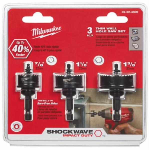 Milwaukee® Hole Saw Set, Thinwall, Series: SHOCKWAVE™, 3 Piece, 2-1/2 in L, 1/4 in Hex Drive, 1/2 in Cutting Depth