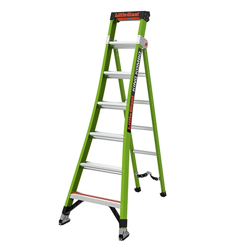 King Kombo Technical, 7' - Type IAA - 375 Lbs Rated, Fiberglass 3-In-1 All-Access Ladder With Rotating Wall Pad Accessory, V-Rung Corner Pad, Ground Cue, And Sure-Set Swivel Feet