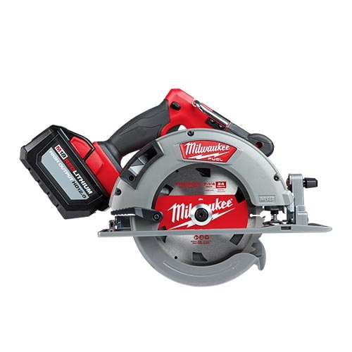 Designed for the carpenter, remodeler and general contractor, the M18 FUEL™ 7-1/4" Circular Saw from Milwaukee® generates 15A corded power, cuts faster than a 15A corded saw and gives users up to 750 cuts per charge. The POWERSTATE™ Brushless Motor provides 5,800 RPM and higher speeds under load for corded cutting performance. REDLINK PLUS™ intelligence ensures maximum performance and protection from overload, overheating and over discharge. The M18 REDLITHIUM HIGH OUTPUT™ HD12.0 battery delivers unmatched run-time in all applications. All magnesium guards and shoe delivers extreme durability for jobsite conditions. A built-in rafter hook offers quick and easy storage and an electric brake stops the blade quickly after cuts are complete for maximum productivity.