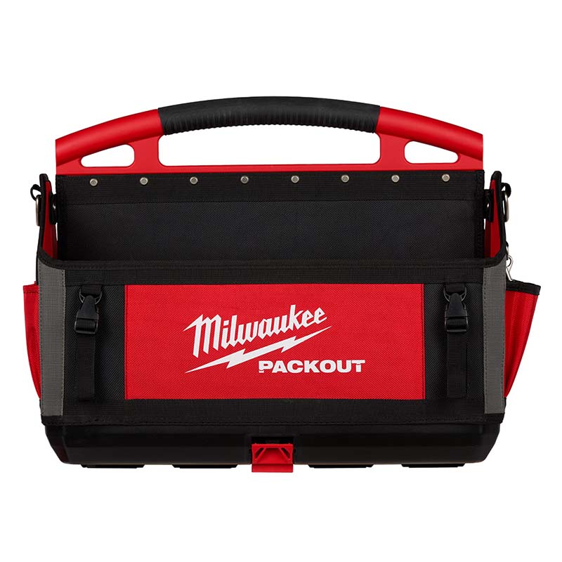Milwaukee® PACKOUT™ Tote, 20 in L x 11 in D Outside, 1680D Ballistic, Black/Red, 32 Compartments