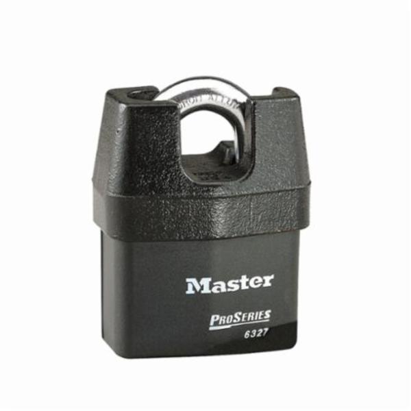Master Lock® Safety Padlock, Rekeyable Rectangular, Series: ProSeries®, Alike Key, Shrouded Laminated Steel Body, Key Number: 10G005, 7/16 in Shackle Diameter, 3/4 in Shackle Height, 7/8 in Shackle Width, Boron Alloy Steel Shackle, 2-5/8 in Body Width, 1-5/16 in Body Thickness, Dual Ball Bearing/5-Pin Tumbler Cylindrical Locking Mechanism, Black