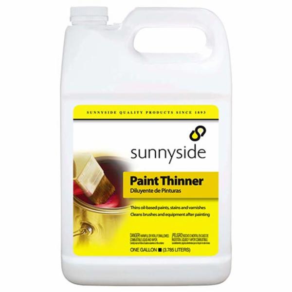 Sunnyside 701G1 Paint Thinner, 1 Gallon Bottle. Paint Thinner is the most widely used paint solvent for thinning of oil-based paints, varnishes, and enamels. Also effective as a clean-up solvent for brushes, rollers and spray equipment. Can be use to remove dirt and grease from parts and surfaces before painting. Will improve brushing qualities when painting.