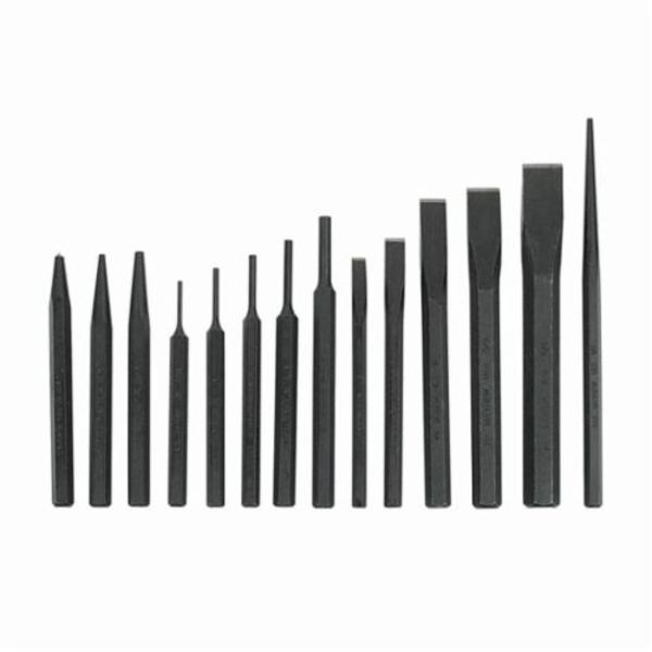 Mayhew™ Punch and Chisel Set, 8-1/2 in Overall Length, 9 Number of Punches, 5 Number of Chisels, 14 Piece, Alloy Steel, Black Oxide