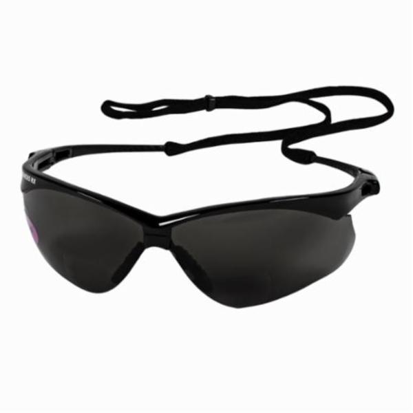 V60 Nemesis* RX™ Bi-Focal Lens Reader Safety Glasses With Neck Cord, 1.5 Diopter, Smoke Lens, Black Nylon Frame, Polycarbonate Lens, 99.9% UVA/UVB/UVC UV Protection