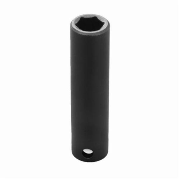 Proto® TorquePlus™ Socket, Deep Length, Yes Impact Rated, Measurement System: Metric, Square Drive, 3/8 in Drive, 17 mm Socket, 69.9 mm Overall Length, 17.5 mm Opening Depth, 25.4 mm Drive End Width, 25.4 mm Socket End Width, Side Locking Hole Locking, 6 Points, 57.2 mm Bolt Clearance Depth, Alloy Steel, Black Oxide
