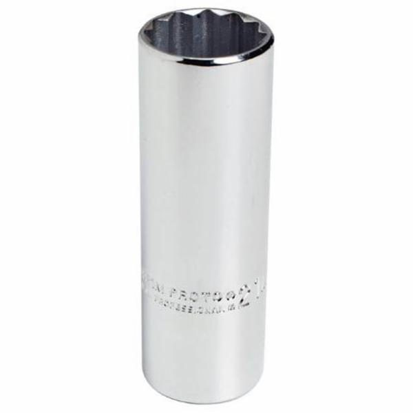 Proto® TorquePlus™ Socket, Deep Length, No Impact Rated, Measurement System: Metric, Square Drive, 1/2 in Drive, 22 mm Socket, 82.5 mm Overall Length, 30 mm Opening Depth, 29.7 mm Drive End Width, 29.7 mm Socket End Width, Ball Locking, 12 Points, 66.5 mm Bolt Clearance Depth, Alloy Steel, Full Polished