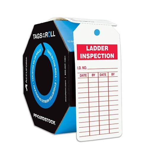 "Ladder Inspection" and Record Tags By-The-Roll, Red on White, 250/Roll