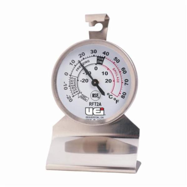 Analog Refrigerator/Freezer Thermometer, 2" Dial, -20 to 80 Deg F, Stainless Steel