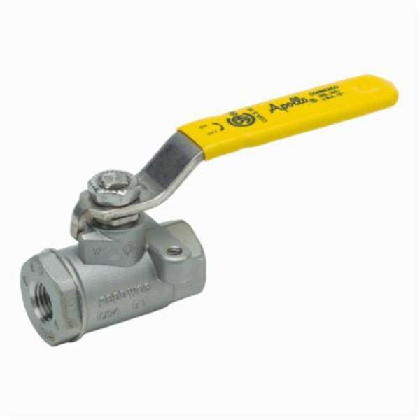 Apollo™ Ball Valve, 2-Piece, Series: 76-100, 1/2 in Nominal, FNPT, 2000 psig CWP, Standard Port, Media: Water, Lever Actuator, 316 Stainless Steel Ball, 2.23 in Inlet to Outlet Length, 1.79 in Top to Inlet Center, Stainless Steel Body, 316 Stainless Steel Stem and PTFE Seat Trim, MPTFE/PTFE Softgoods, Domestic