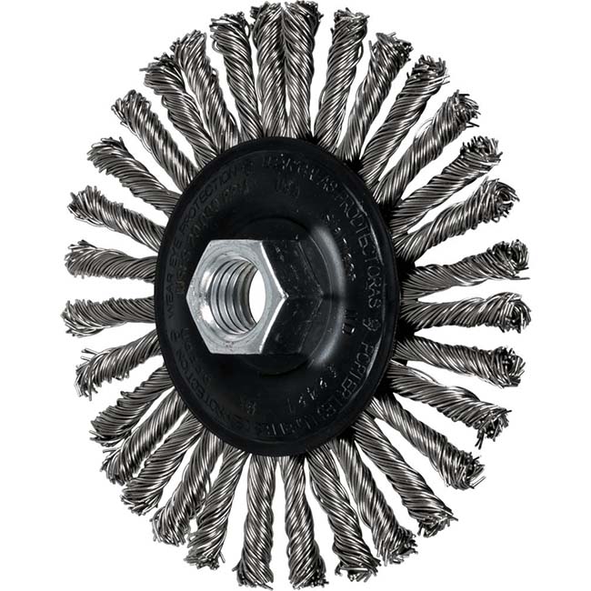Stringer Bead/Twist Knot COMBITWIST® Wheel Brush, 4-1/2" Dia x 3/16" W, 5/8"-11 Arbor, 0.02" Carbon Steel Wire
